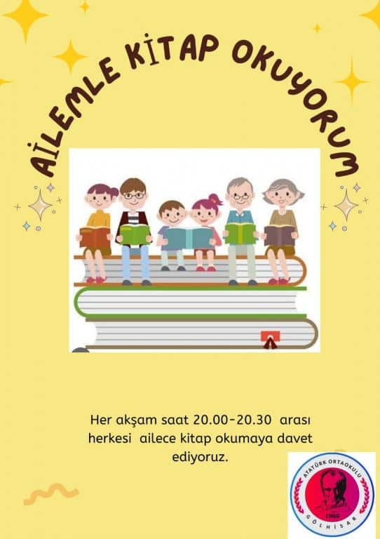 Okulumuz ögretmenlerinden Çiğdem VURAL'ın sürdürdüğü 'AİLEMLE KİTAP OKUYORUM' projesinin amacı veliler ve öğrencilerimize kitap okuma sevgisini kazandırmak.Kitap okumayı hayatının her döneminde kalıcı kılmak ve kitap okuma alışkanlığı oluşturmak.